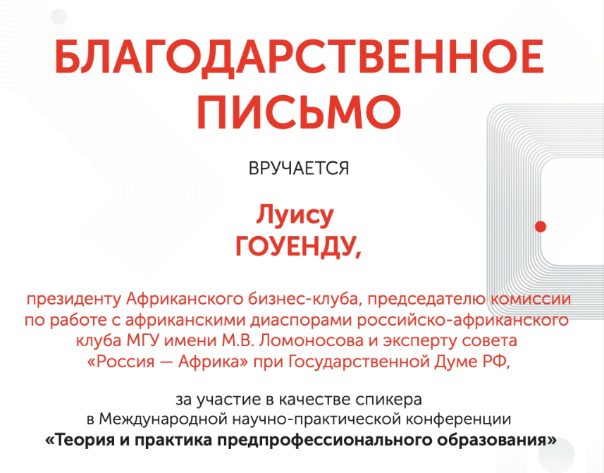 - Член Президиума Союза Африканских Диаспор в Росси